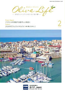 B.F.P.Japan発行の月刊『オリーブライフ』は、聖書を土台として、さまざまな視点から皆様にイスラエルについての情報を提供させていただきます。日本全国、また海外在住の方々からも、「これまで遠くにあったイスラエルが、とても身近になった…」という感想が多数寄せられています。