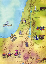 古代世界の交易路神は意図的に、イスラエルを神のショーケースとされました。古代世界の南北に通じる交易路は「海の道」と呼ばれ、東西をつなぐ交易路は「王の道」と呼ばれていました。この二つのルートはいずれもイスラエルを通らなければなりません。アジア、アフリカ、ヨーロッパの3大陸の接点であるイスラエルは、隊商や旅人たちの道程、そして兵士らがたどる戦地への道や帰路であるという重要な意味をもっていました。異教の神々を奉るためにさまざまな慣習を行う周辺諸国の中で、神そして人々との関係を正しくもつ生き方を導くトーラー(創世記から申命記まで)を通し、神はご自身を啓示されました。それゆえ、真の神のものであるイスラエルという国が、際立った存在となっていたのです。