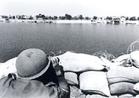 1967年の六日戦争時のスエズ運河。シナイ半島側からエジプト側を見る。