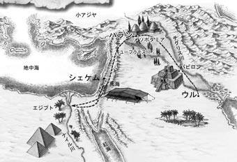 点線はアブラハムが移動したルート私たちがクリスチャンとしてイスラエルに関心をもつ必要があると思う第一の理由は、神が世界にご自身を明らかにする舞台としてこの場所を選ばれたから、ということです。そして神は、唯一の神を紹介する証し人としてユダヤ民族を選ばれました。さらに、聖書は霊感を受けたユダヤ人によって書かれました。今日、書かれた国から何千キロも離れた国々で、また、聖書の出来事から何千年も隔てた時代の中で、何十億という人々が霊的にも、そして、社会や文化的にも影響を受けています。