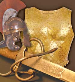 ローマ兵の武具「終わりに言います。主にあって、その大能の力によって強められなさい。悪魔の策略に対して立ち向かうことができるために、神のすべての武具を身に着けなさい。私たちの格闘は血肉に対するものではなく、主権、力、この暗やみの世界の支配者たち、また、天にいるもろもろの悪霊に対するものです。ですから、邪悪な日に際して対抗できるように、また、いっさいを成し遂げて、堅く立つことができるように、神のすべての武具をとりなさい。では、しっかりと立ちなさい。腰には真理の帯を締め、胸には正義の胸当てを着け、足には平和の福音の備えをはきなさい。これらすべてのものの上に、信仰の大盾を取りなさい。それによって、悪い者が放つ火矢を、みな消すことができます。救いのかぶとをかぶり、また御霊の与える剣である、神のことばを受け取りなさい。すべての祈りと願いを用いて、どんなときにも御霊によって祈りなさい。」(エペソ6:10-18a)