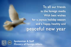 上の写真は、クリスマス・新年のあいさつとしてイスラエル外務省・報道担当局から届いたメールです。