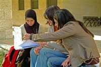 またアラブ人女性は、イスラムのしきたりから出ることを目的に奉仕に加わる場合もあると考えられています。ハマスのようにイスラム原理主義に走る者がいるかたわら、自分の利益を優先する現代っ子のアラブ人も増えているようです。(写真:アラブ系女子学生)