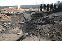 この爆発で検問所付近に巨大な穴があき、物資を乗せたトラックなどが通過できなくなっています。(写真)