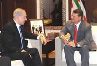この会議に先立ち、ネタニヤフ首相がお忍びでヨルダンのアブドラ国王を訪問していました。ネタニヤフ首相と国王は2時間ほど会談したと報じられています(写真)。また、アメリカのオバマ政権も、アッバス議長に直接対話再開に向けて圧力をかけている模様です。