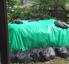 庭から運び出すことのできない汚染土福島県においては、放射能に汚染された土が、庭に積まれたままの家々をたくさん見ました。業者さんが除染作業をしてくれますがそれを運ぶ場所が無いのだそうです。汚染土にカバーをかけ周囲を土嚢(どのう)で押さえたままの状態です。確かに線量が低くなりつつあるそうですが、子どもたちへの影響を考え「遊び場」の提供、県外に移動し遊ぶ「週末退避」を手伝う教会や地域の働きもまだやめるわけにはいきません。福島にはほかにもたくさんの課題があり、先が見えないこの状況を唯一変えることができる主に、さらに叫び祈る必要性を感じました。