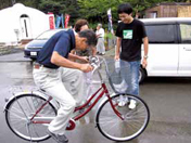 新品の自転車に乗って嬉しそうなご主人8月18日にチームと同行させていただき、南三陸町へ行きました。あるご夫妻へ自転車をお渡しするためです。新しく綺麗な色の自転車は丁寧にトラックの荷台から降ろされ引き渡されました。さっそく、嬉しそうにペダルをこぐご主人の姿は、まるで子どもが初めて自転車を与えられたときのような様子。その横で奥様は涙ぐみながら何度もありがとうと言っておられました。「ある避難所では一人一台ずつ自転車が配給されている。でも私たちは自宅避難なのでもらえなかった。これで自由に買い物に行くことができる。」奥さまの止まらない涙は、欲しかった自転車がもらえた嬉しさと、求めても、もらえなかったという心の傷が癒されたしるしだと感じました。神さまはまずは人々の心を回復し、地域を回復しておられます。そのために教会を豊かに用いてくださっています。私たちの役割として、皆様と共にさらに祈り支援を続けていきたいと思います。
