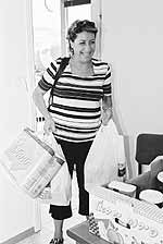 そのような方々に、BFP(ブリッジス・フォー・ピース)では、『台所用品セット』をお贈りしています。中を開けると……奥様方は思わず“ニッコリ”満面の笑みを浮かべてしまう品物がたくさん詰まっています。フライパン、フライ返し、大・小サイズが違う鍋、まな板、包丁……イスラエルでまともにそろえるとしたら、貧しい人々のお財布があっという間に空になってしまうようなものばかりです。受け取ったその日から、食事作りに必要なものが一式揃っています。鍋だけでは食事は作れませんから、パスタや油、缶詰など、すぐに料理ができそうな食物も一緒にお贈りします。