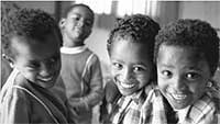 移民受け入れセンター内の幼稚園で遊ぶエチオピア移民の子どもたち