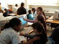 パソコンを使って学ぶ子どもたちまた、私たちは献身的な教師たちにも出会いました。子どもたちを心から愛し、彼らのためにすべてを捧げている人たちです。彼らは予算が全くない中で、殺風景な教室を、創造力を駆使した巧みな方法で楽しく学べる場所につくり変えています。しかも、経済的に余裕がなく、おやつを買ってもらえない子どもたちに食べさせたいと、わずかな給料の中からおやつを買う教師もいました。町長同様、ここでも学校長は給料を何カ月ももらわずに、学校の運営のために捧げているといいます。