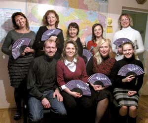 日本から贈られた扇子を持つキエフのフィッシャーたち旧ソビエトの残りの人々を救出する